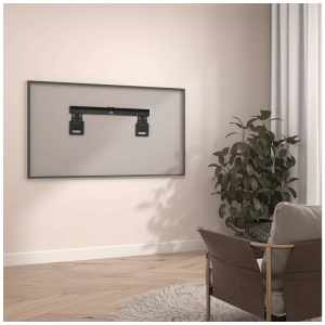 Ultra-flat dizajn omogućava zaslonu da stoji vrlo blizu zida — minimalna udaljenost između televizora i zida je svega nekoliko centimetara. Nosač uključuje sigurnosne kuke koje sprječavaju slučajni ispad TV-a, a konstrukcija je izrađena od čvrstog metala s robusnim premazom kako bi se osigurala dugotrajnost i otpornost.